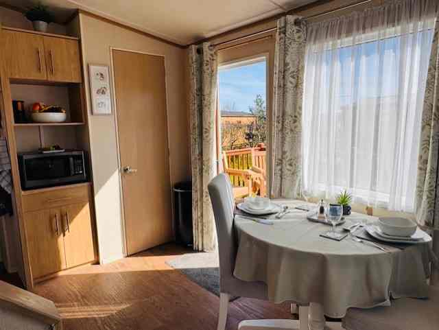 - The dining area overlooking side decking area with table and four chairs